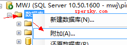 第三步:右键数据库(总的)--附加,在跳出的对话框中击添加,再指定刚才的mdf文件