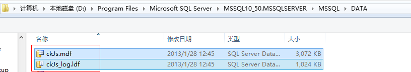 第二步:复制分离出来的数据(一般在Data目录下),包含两个文件mdf和ldf