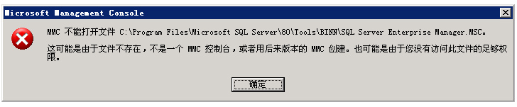 “MMC不能打开文件C:Program FilesMicrosoft SQL Server80ToolsBinnSQL Server Enterprise Manager.MSC。可能是由于文件不存在,不是一个MMC控制台,或者用后来的MMC版本创建。也可能是由于您没有访问此文件的足够权限。”