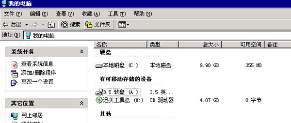 问题描述:打开“我的电脑”发现10GB容量的C盘只剩余355MB“可用空间”,已经严重不够用。如下图: