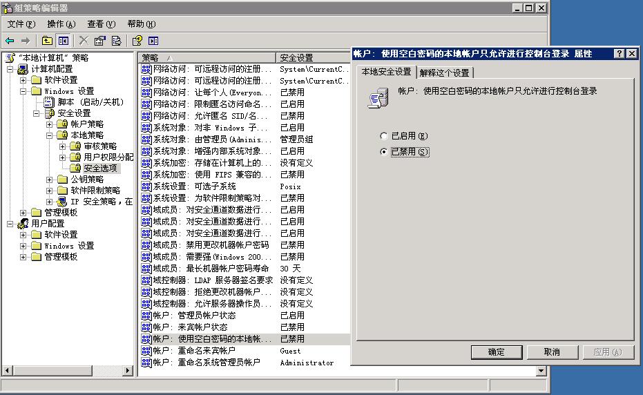 二、更改设置“使用空白密码的本地账户只允许进行控制台登录”为禁用。
