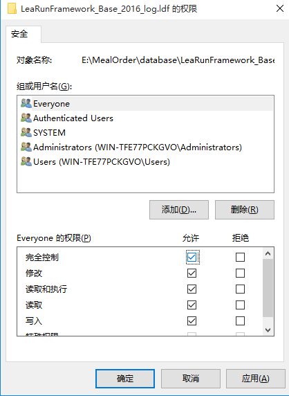 5.确定-->默认选中的Everyone用户-->Everyone的权限-->勾选"完全控制"即会把下面所有未勾选的都默认勾选上。