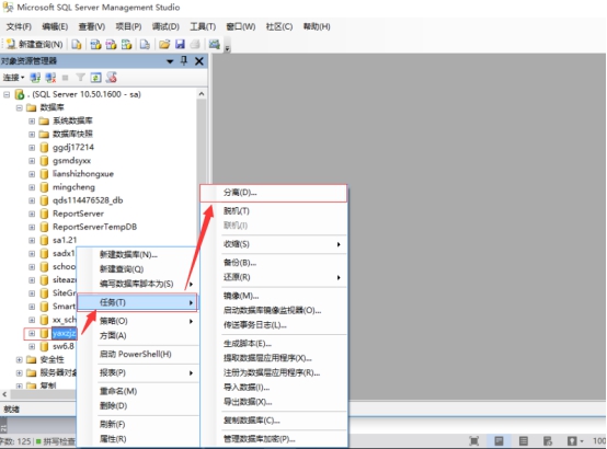 第一步:企业管理器》找到你的数据库》右键》所有任务》分离数据库》确定