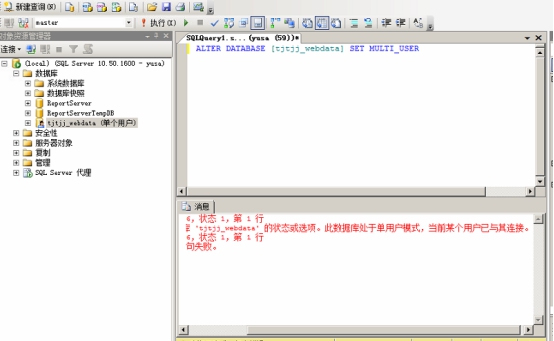 问题:当我们在数据库中将网站数据库设置为单个用户,造成前后台访问异常,需要数据库中调整,问题和解决办法如下: