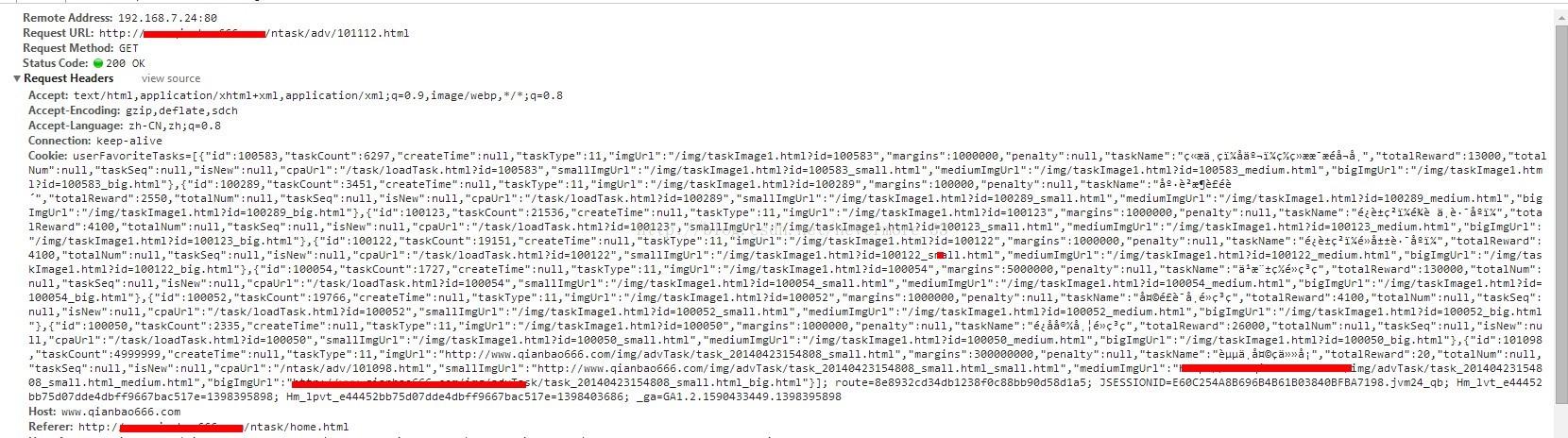 对比该页面正确与白屏的请求详细内容发现,两类请求中仅cookie一项不同,如下图所示