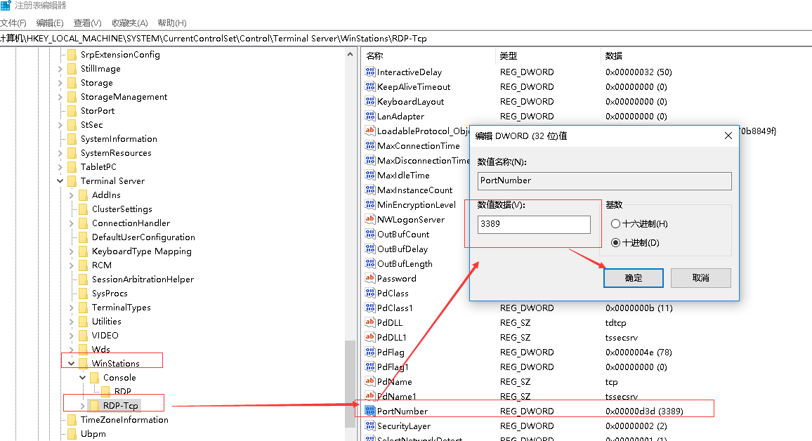 [HKEY_LOCAL_MACHINESYSTEMCurrentControlSetControlTerminal ServerWinStationsRDP-TcpPortNumber]