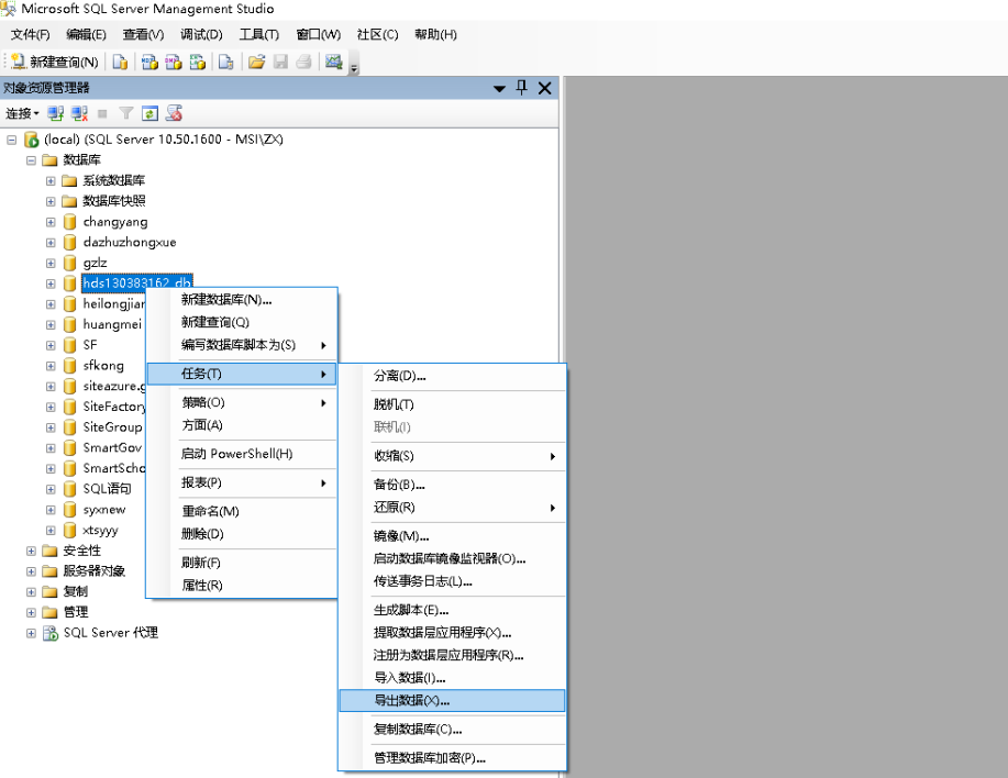 步骤一:在自己电脑上新建一个数据库,然后用bak的备份文件还原数据库;然后生成sql2008的脚本。
