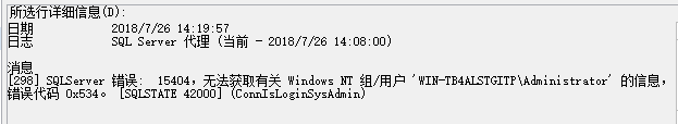 问题分析:看错误信息,发现administrator用户信息和现有的不符,判断应该是安装sql之后修改了计算机名称导致。