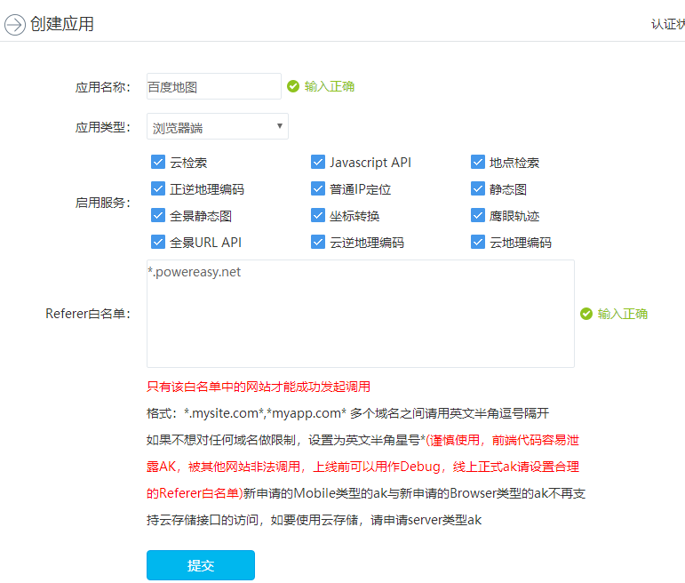 2、白名单的网站是我们网站的地址,也就是只有这个地址才能使用这个密钥调用百度地图。