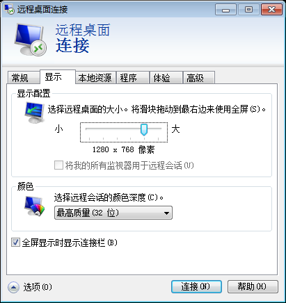 现有一方法就是设置显示器分辨率来解决上述问题。把分辨率设置一下,改成比自己电脑屏幕分辨率小一级的,这样就可以“最大化”远程桌面窗口,不仅没有滚动条,而且不影响QQ和各种本地窗口之间切换。