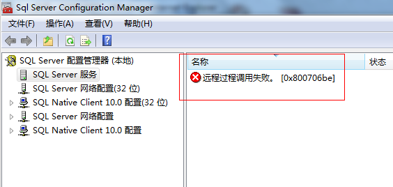 Sqlserver2008R2配置管理工具服务显示远程过程调用失败:0x800706be