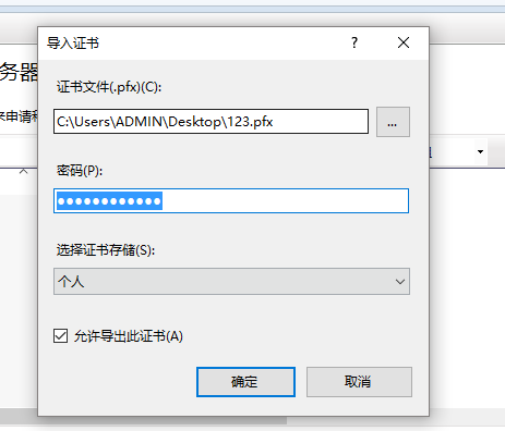 3、导入证书,输入证书密码。