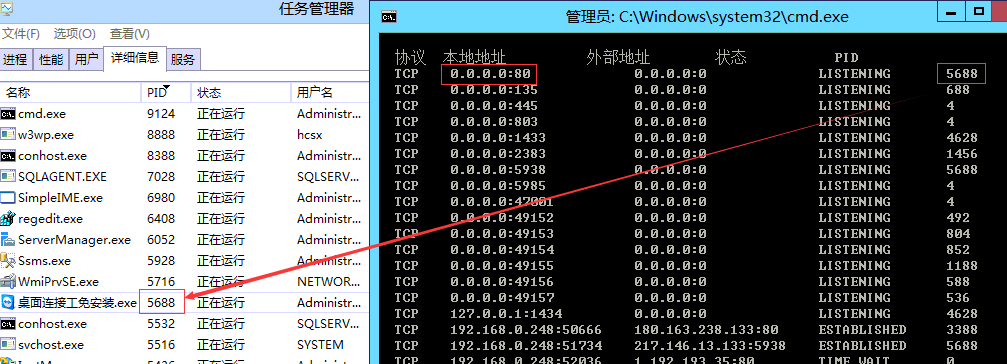 在服务器搭建网站,绑定端口时提示,该端口(进程)被占用,可是比较奇怪,服务器上没有其他网站,那么问题来了,如何排查哪个程序(进程)占用端口呢?