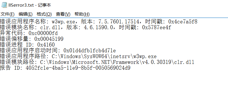 操作系统日志提示故障模块名称clr.dll,如下图: