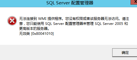 打开数据库配置管理器提示“无法连接到WMI提供程序,您没有权限或者该服务器无法访问”