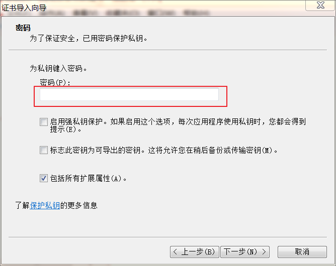 (6)单击【浏览】导入下载的PFX格式证书文件。
