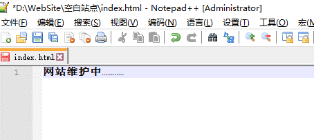 修改这个文件,输入“网站维护中中…………”字样。保存。