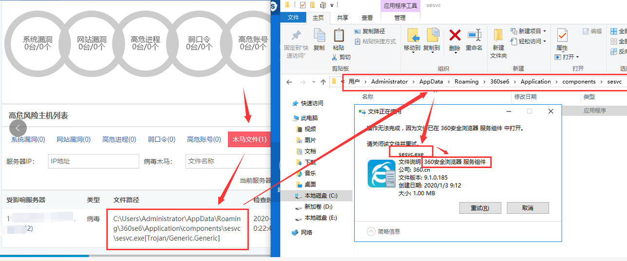 解决方案:如下图所示,360浏览器的文件会被安全狗列为木马,从而发出警报信息。