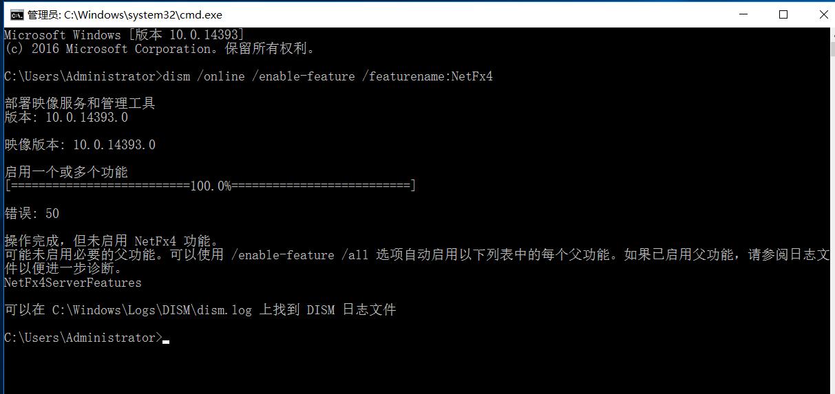 如果提示未启用 NetFx4 功能,则输入以下命令: