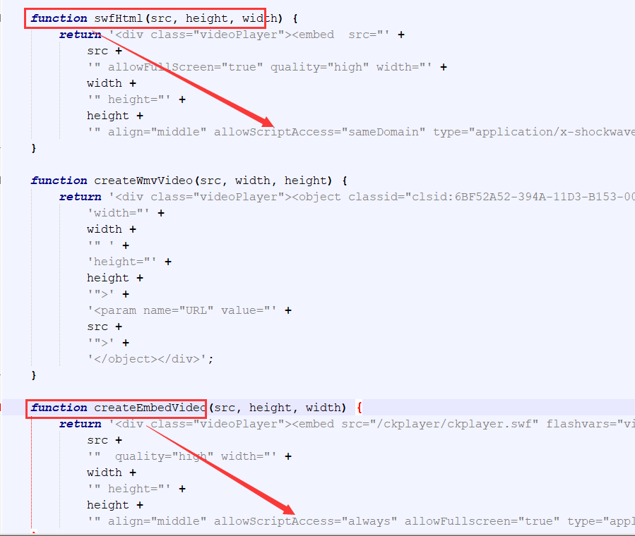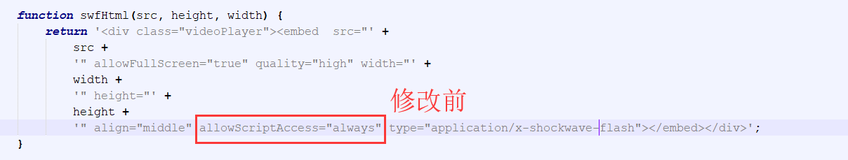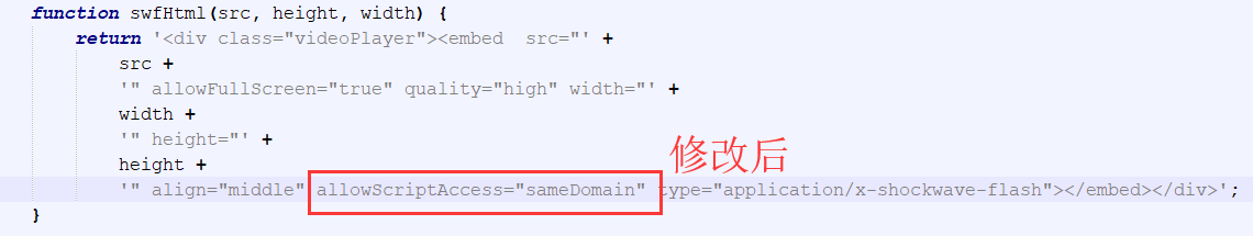 注意:这个页面有两个地方都出现了allowScriptAccess参数;要搜索修改完整。