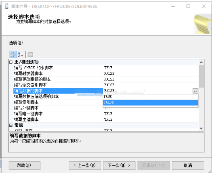 把编写数据可脚本这一项改为true,默认是false只导出表结构