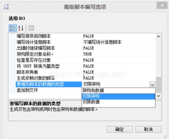 但是脚本选项已经没有了编写脚本和数据的选项,取而代之的是架构选项