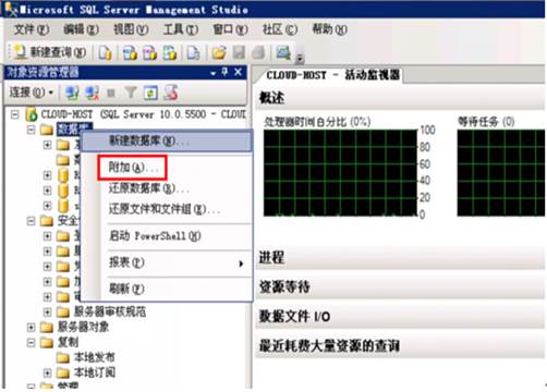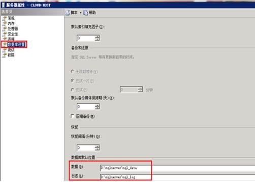 2、选择”数据库设置”,如图直接修改数据和日志的存储路径