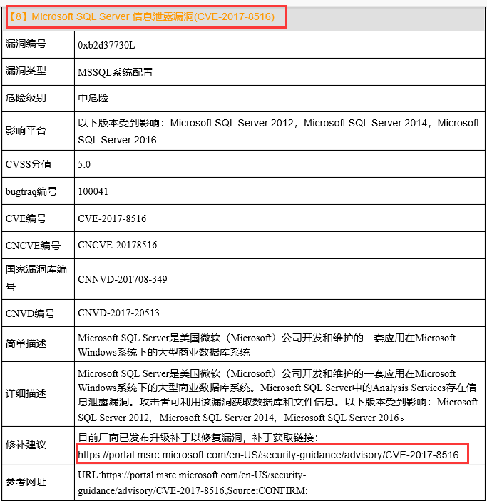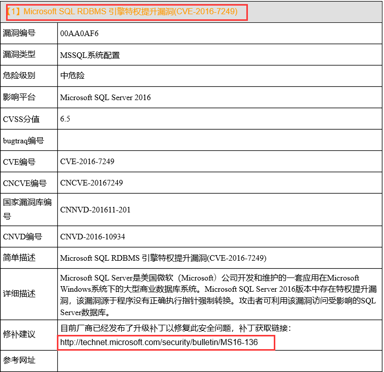 问题描述:被检测到Microsoft SQL RDBMS 引擎特权提升漏洞;