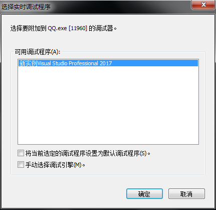打开QQ测试【程序自己启动的时候VS就会自动附加了】