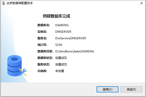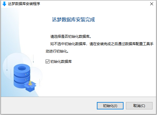 数据库自身安装过程结束时,将会提示是否初始化数据库,