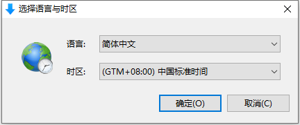 请根据系统配置选择相应语言与时区,点击“确定”按钮继续安装。如下图所示: