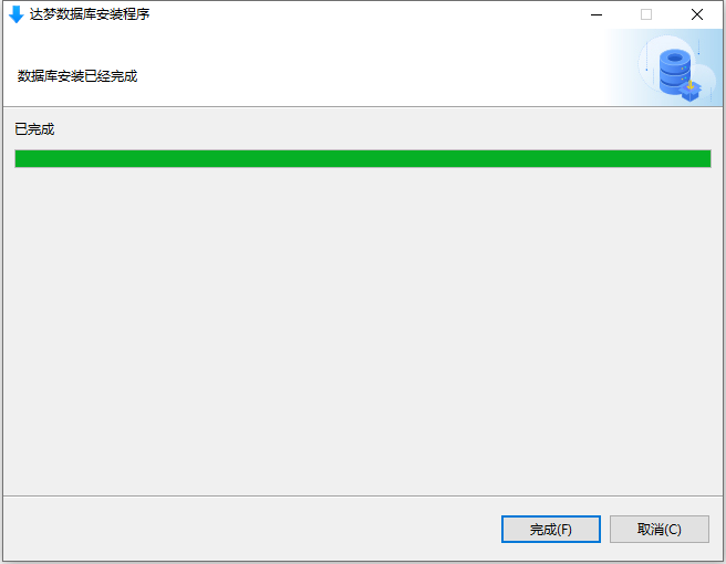 安装“完成”后,点击完成将直接退出。点击“取消”将完成安装,关闭对话框。
