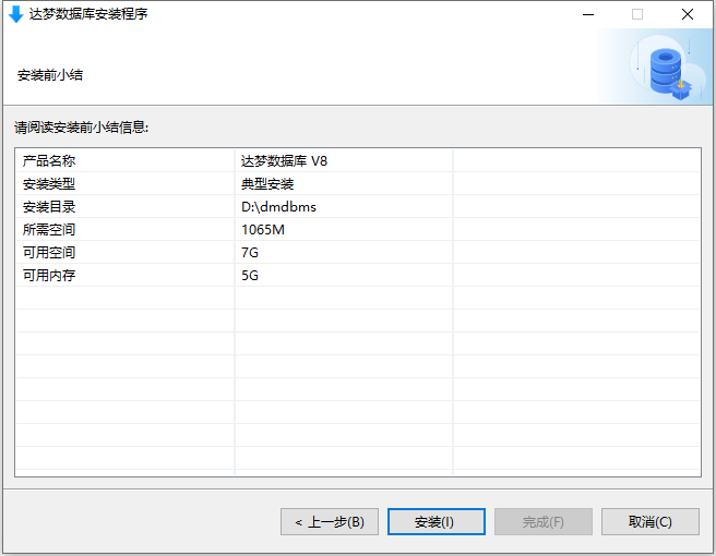 目录、可用空间、可用内存等信息,用户检查无误后点击“安装”按钮进行 DM 的安装。