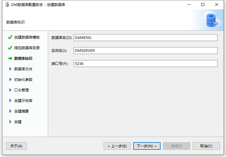 用户可输入数据库名称、实例名、端口号等参数。如下图所示: