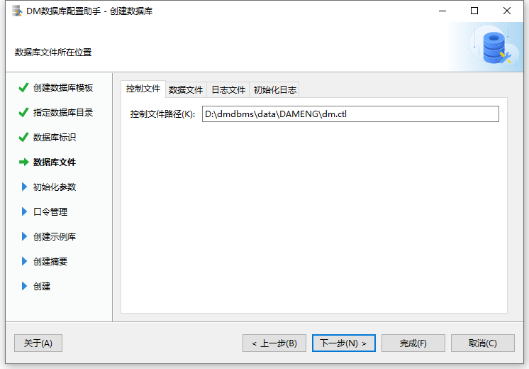 用户可通过选择或输入确定数据库控制、数据库日志等文件的所在位置,并可通过