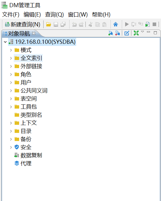 安装完成后,使用DM管理工具,连接Linux系统的达梦数据库