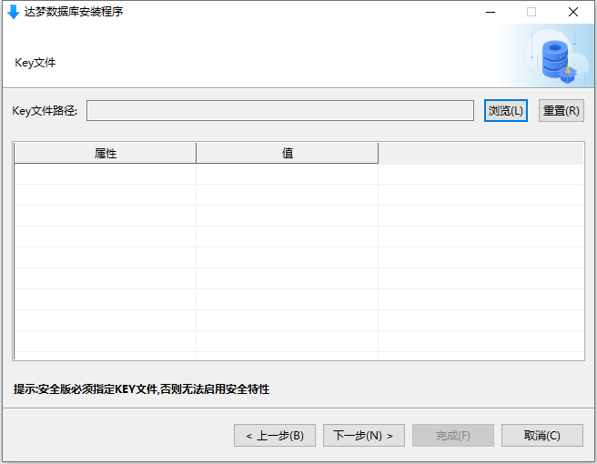 用户点击“浏览”按钮,选取 Key 文件,安装程序将自动验证 Key 文件信息。如果