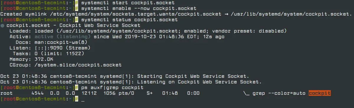 | 1 2 3 | # systemctl start cockpit.socket# systemctl enable --now cockpit.socket# systemctl status cockpit.socket |