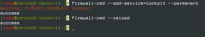 | 1 2 3 4 | # firewall-cmd --add-service=cockpit --permanent# firewall-cmd --reloadLocally: https://localhost:9090 |