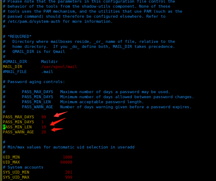 问题分析:等保要求操作系统配置不合规的密码长度、更换周期处理办法:操作系统配置/etc/login.defs,配置一定的密码长度且定期更换。