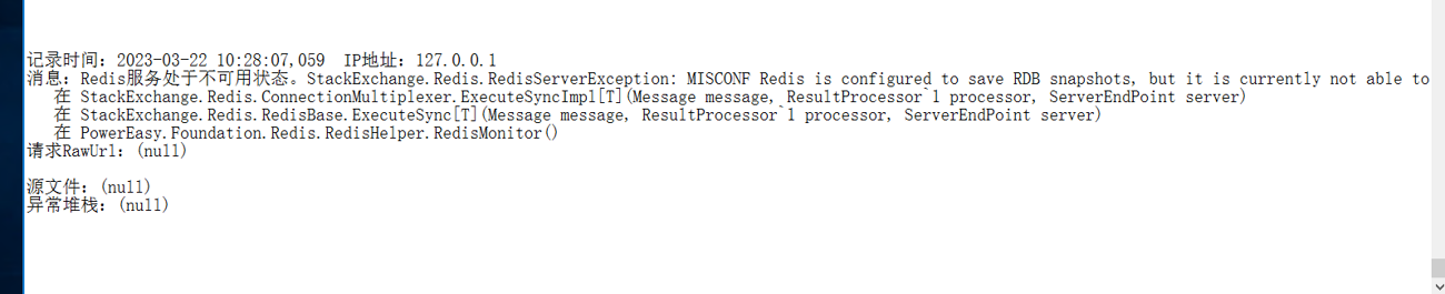 报错信息:MISCONF Redis is configured to save RDB snapshots, but it is currently not able to persist on disk.