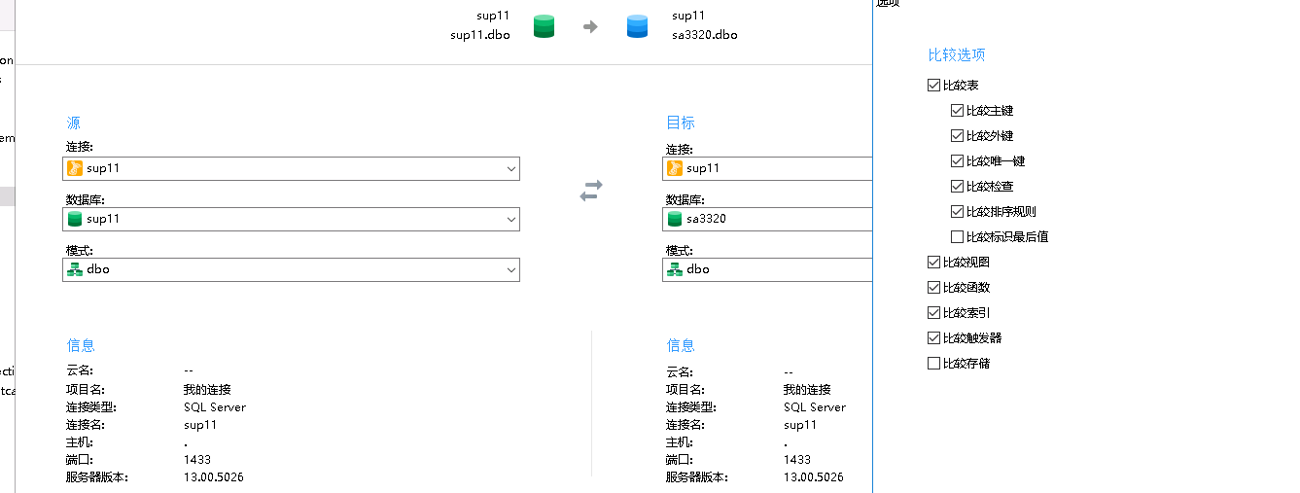 两个数据库之间结构对比,如有无字段差异,差异字段什么类型