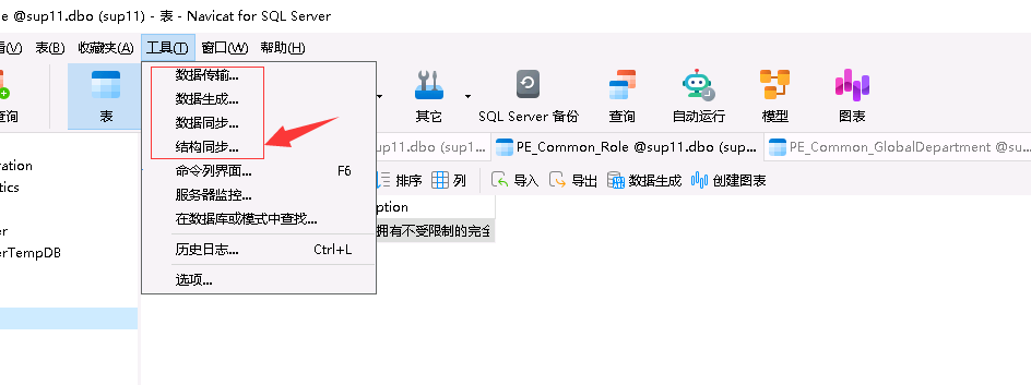 1、打开navicat后,登录上数据库服务器,点击工具栏-结构同步