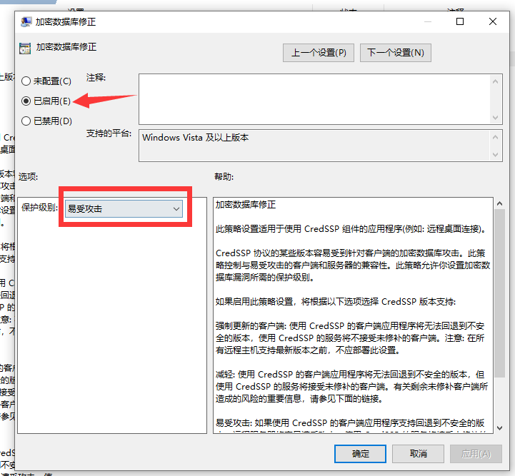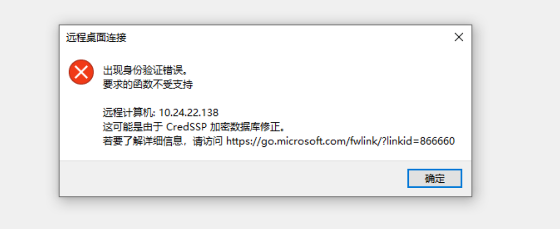 问题分析:Windows远程时提示CredSSP加密数据库修正,如下图: