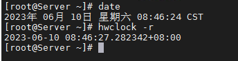 date -s "20230610 09:00:00",然后hwclock -w将准确时间写入硬件,重启服务器