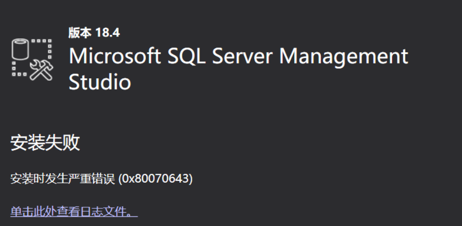 问题分析: 安装SSMS报错0x80070643,如下图: