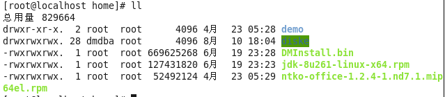 分析报这个错误应该是跟达梦数据库安装用户dmdba的权限或者达梦数据库安装的目录的文件权限有关,从上图来看数据库安装目录的权限应该是没问题的。接下来查看达梦数据库安装用户dmdba的权限,进入/home,执行ll