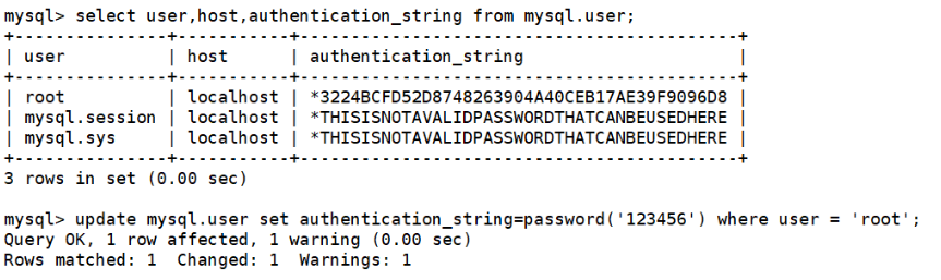在my.cnf配置文件添加 skip-grant-tables 之后,mysql 登录 数据库之后执行: