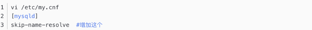 在MySQL配置文件(my.ini或者/etc/my.cnf)中[mysqld]添加"skip-name-resolve",减少域名解析的时间