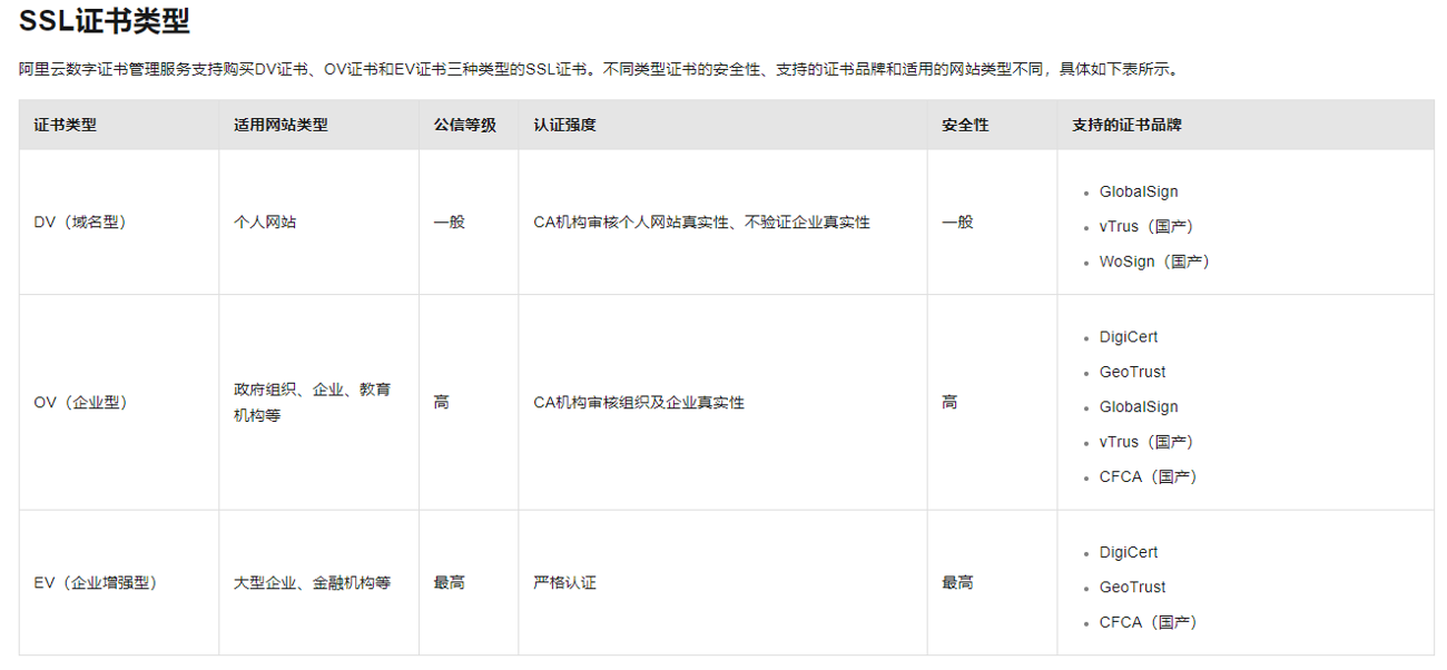 问题描述:阿里云数字证书有哪些类型?应该如何选择?